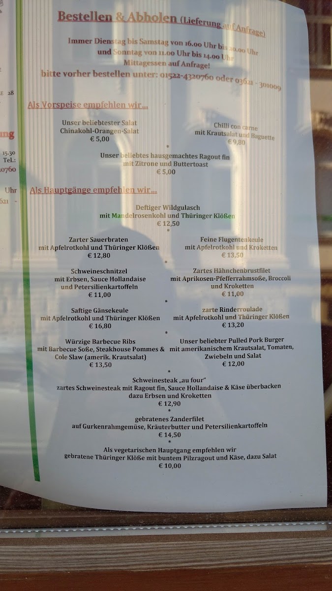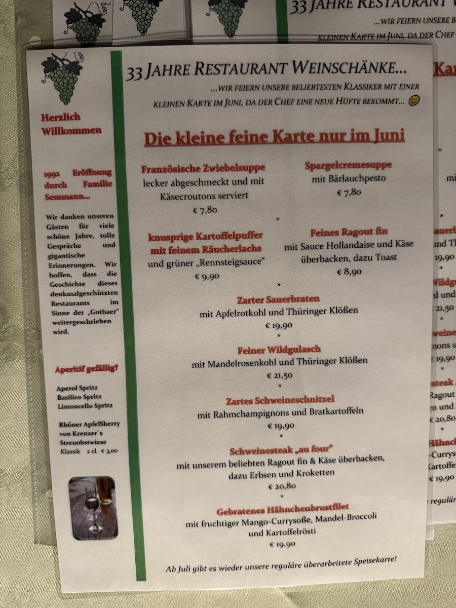 The Restaurant Weinschänke Menu is a delightful showcase of traditional German flavors, served in a warm and inviting atmosphere. Located at Gartenstraße 28 in Gotha, Germany, this charming spot offers a carefully curated selection of dishes that will make your visit unforgettable. Whether you're in the mood for a hearty schnitzel, a fresh salad, or something from their seasonal specials, every dish is crafted with the finest ingredients.
